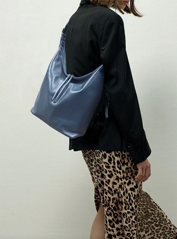 (АРТИКУЛ: 10015) СУМКА МЕШОК, БОЛЬШАЯ, НАТУРАЛЬНАЯ КОЖА, ГОЛУБАЯ, ЧЕРЕЗ ПЛЕЧО
