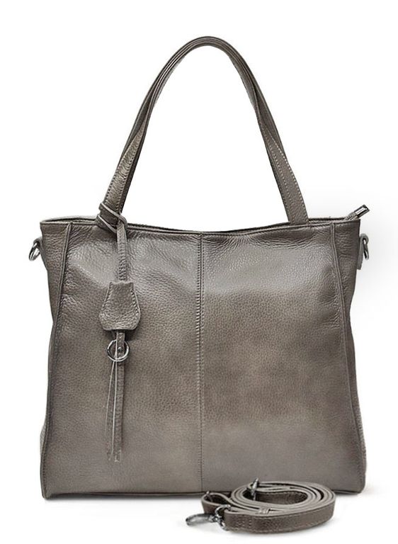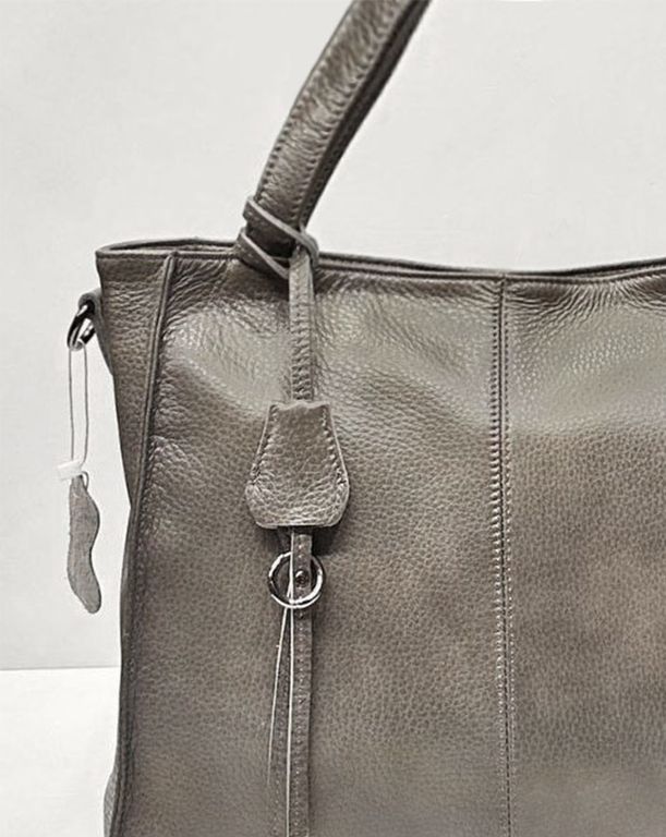 (АРТИКУЛ: 10023/0/82) СУМКА ЖЕНСКАЯ СРЕДНЕГО РАЗМЕРА, НАТУРАЛЬНАЯ КОЖА, СЕРАЯ С БЕЖЕВЫМ ОТТЕНКОМ, С ПЛЕЧЕВЫМ РЕМНЕМ