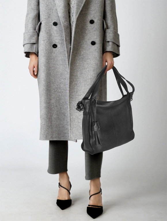 (АРТИКУЛ: 10024/1/82) СУМКА ЖЕНСКАЯ СРЕДНЕГО РАЗМЕРА, НАТУРАЛЬНАЯ КОЖА, ЧЕРНАЯ, С ПЛЕЧЕВЫМ РЕМНЕМ