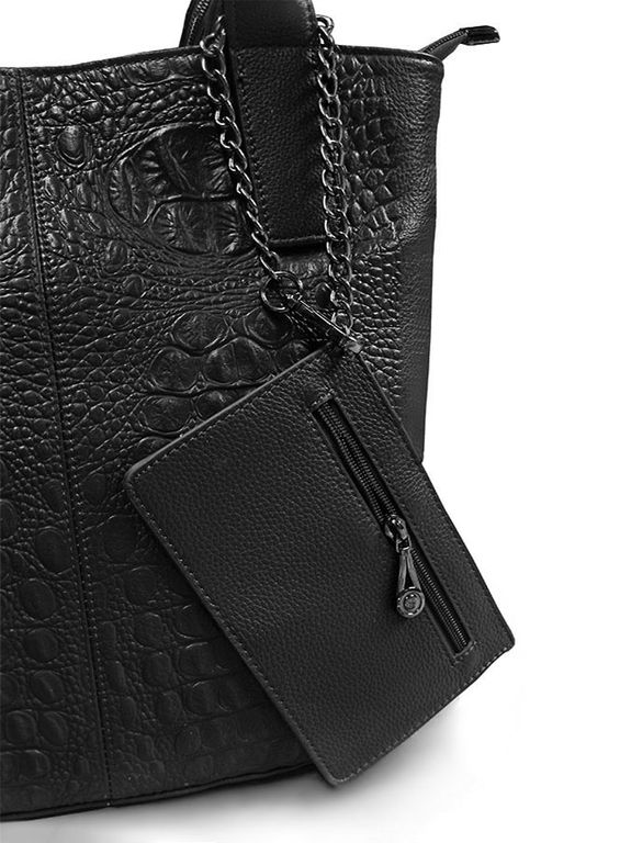 (АРТИКУЛ: 10032/0/82) СУМКА ЖЕНСКАЯ БОЛЬШАЯ, НАТУРАЛЬНАЯ КОЖА, ЧЕРНАЯ, С КОШЕЛЬКОМ, РУЧКИ ЧЕРЕЗ ПЛЕЧО