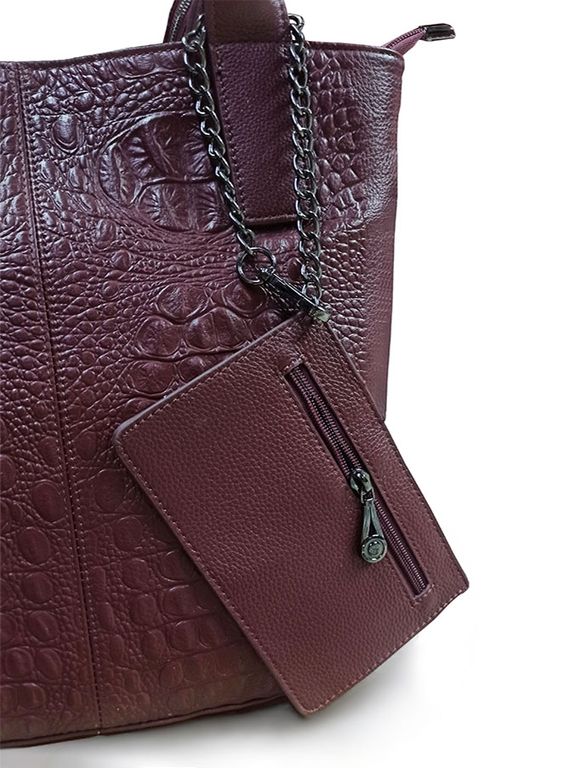 (АРТИКУЛ: 10033/0/82) СУМКА ЖЕНСКАЯ БОЛЬШАЯ, НАТУРАЛЬНАЯ КОЖА, БОРДОВАЯ, С КОШЕЛЬКОМ, РУЧКИ ЧЕРЕЗ ПЛЕЧО
