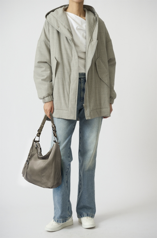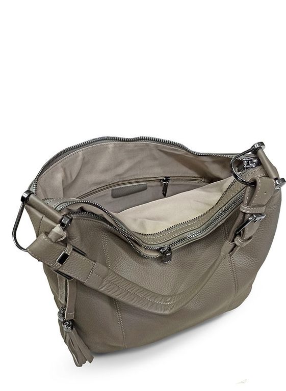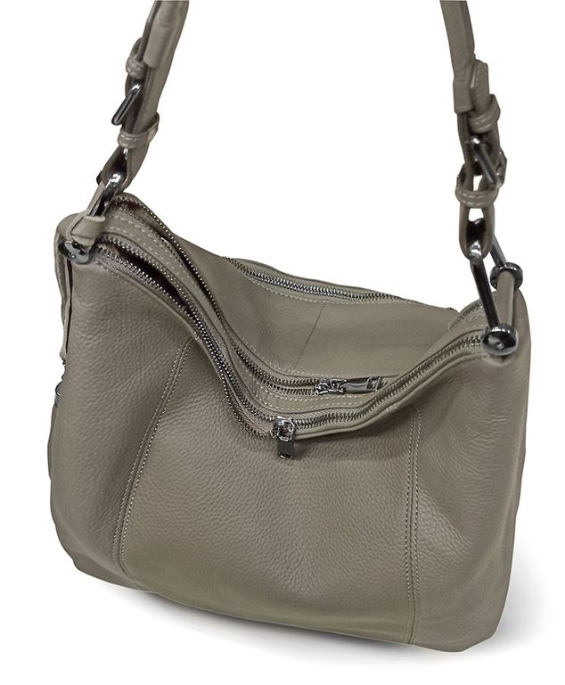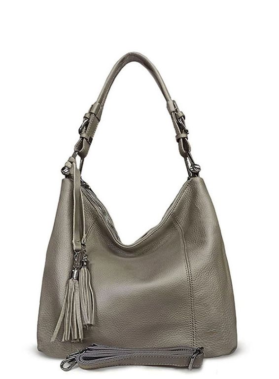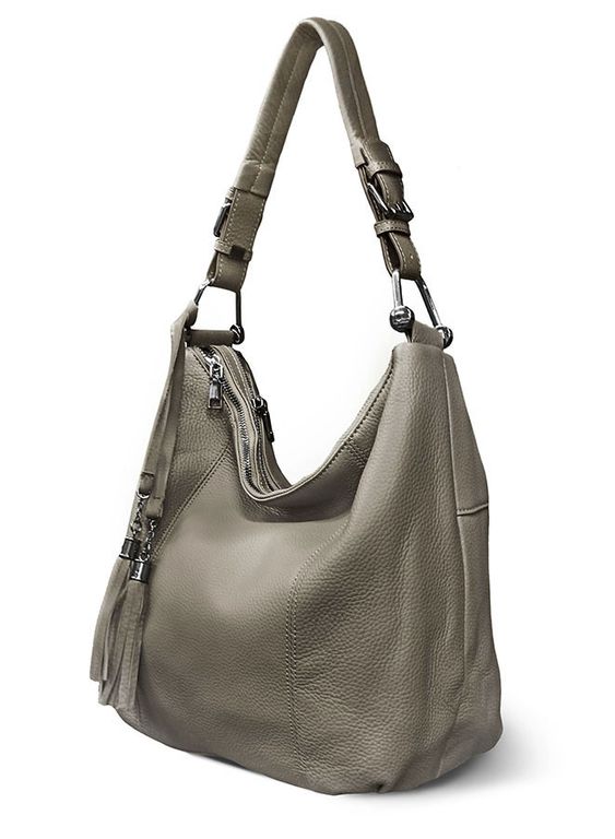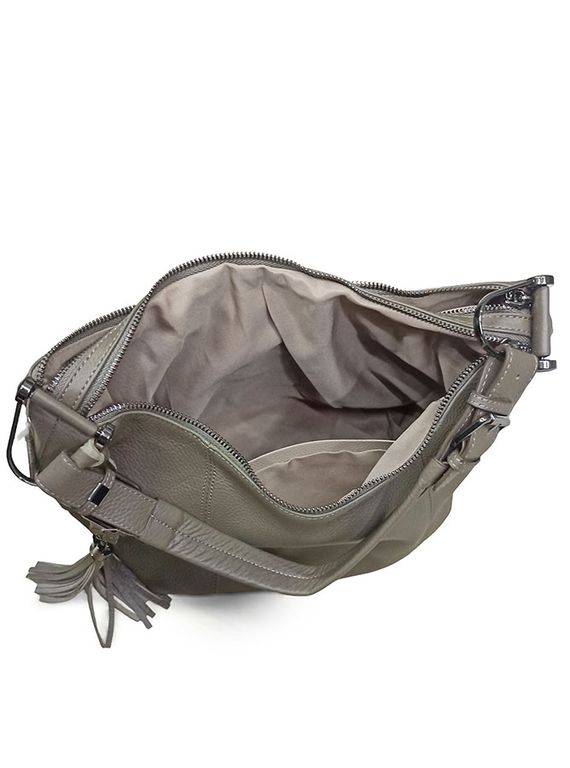 (АРТИКУЛ: 10040/52) СУМКА МЕШОК ЖЕНСКАЯ, НЕБОЛЬШАЯ, НАТУРАЛЬНАЯ КОЖА, СЕРАЯ С БЕЖЕВЫМ ОТТЕНКОМ, РУЧКА И РЕМЕНЬ ЧЕРЕЗ ПЛЕЧО