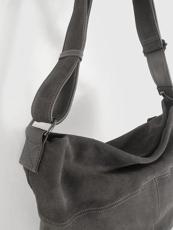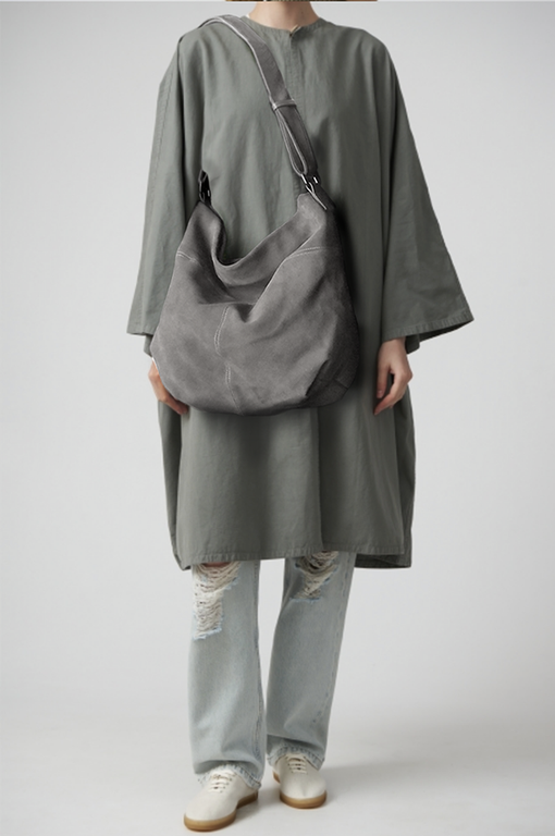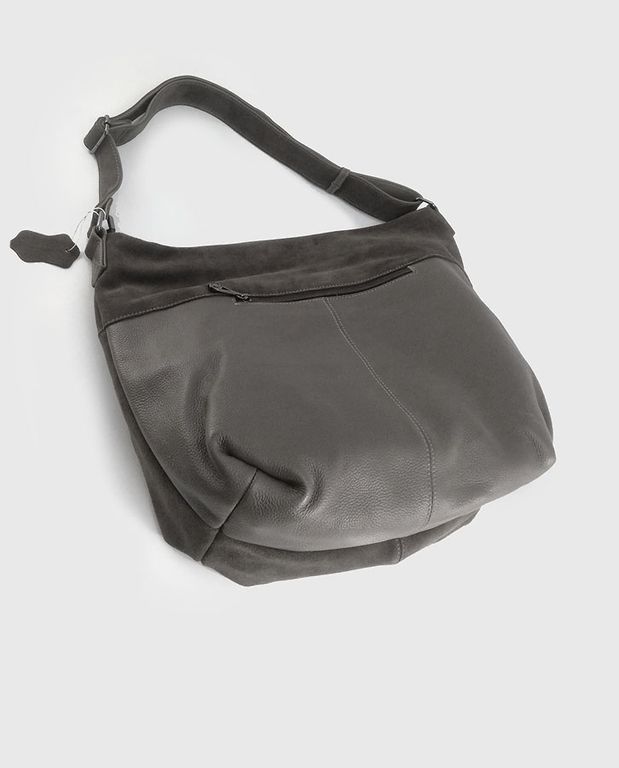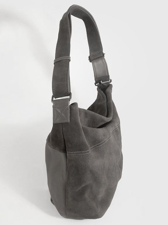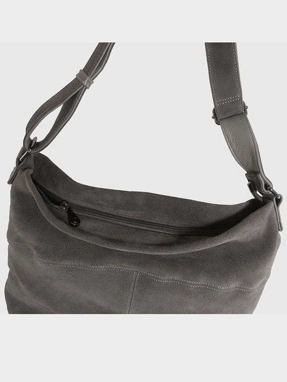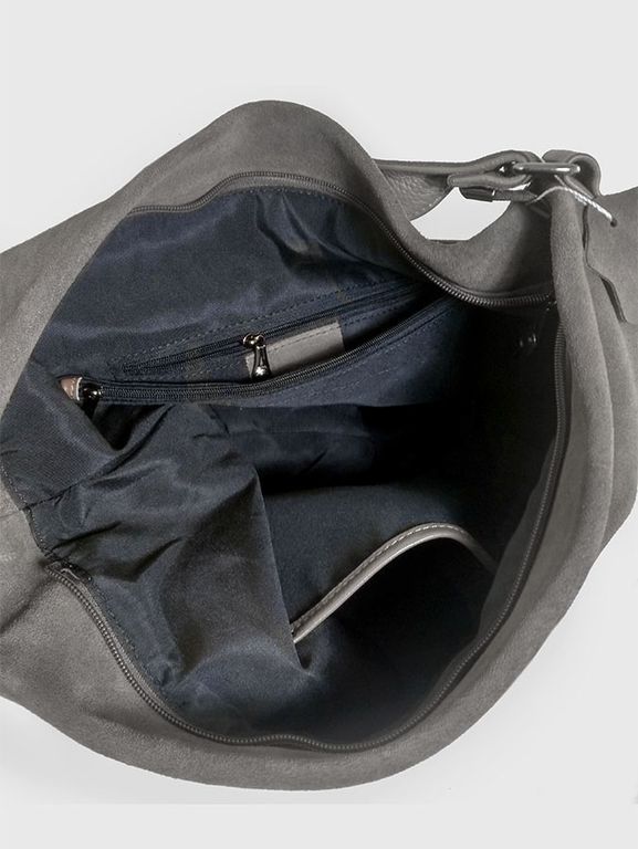 (АРТИКУЛ: 10044/8) СУМКА МЕШОК ЖЕНСКАЯ, БОЛЬШАЯ, НАТУРАЛЬНЫЕ КОЖА/ЗАМША, СЕРАЯ, ШИРОКИЙ РЕМЕНЬ ЧЕРЕЗ ПЛЕЧО