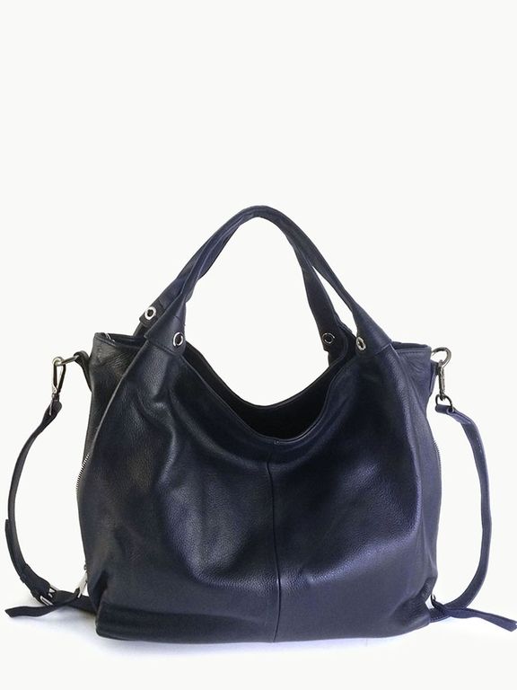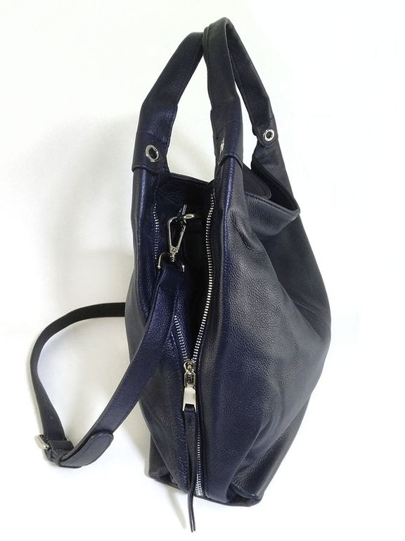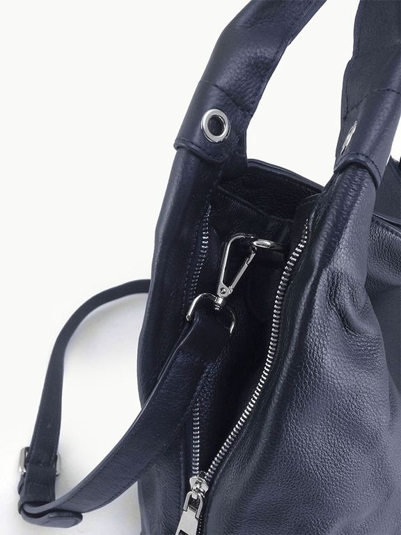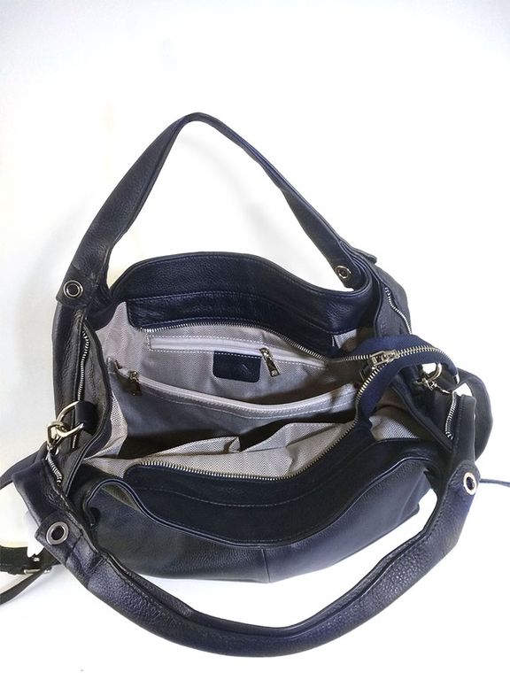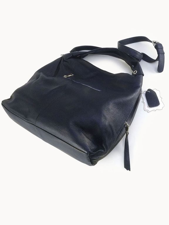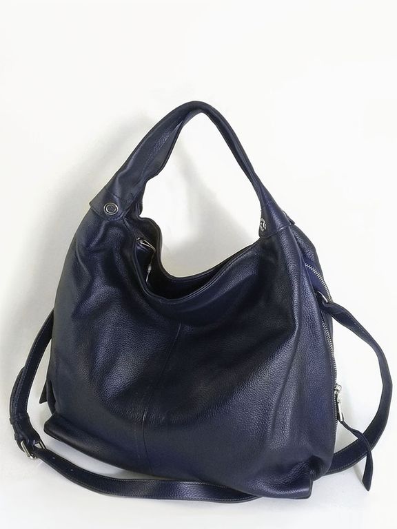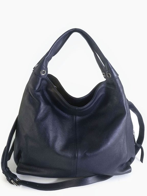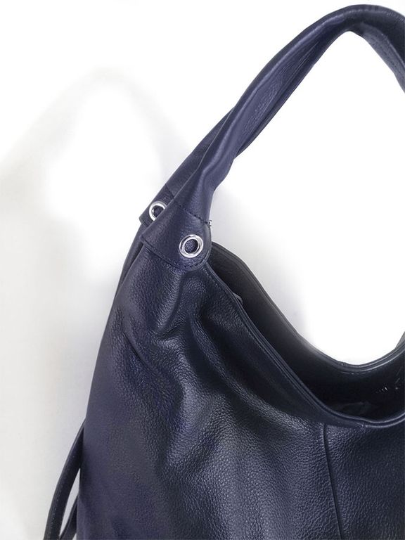 (АРТИКУЛ: 10048/2) СУМКА МЕШОК, БОЛЬШАЯ, НАТУРАЛЬНАЯ КОЖА, ТЕМНО-СИНЯЯ, С ПЛЕЧЕВЫМ РЕМНЕМ