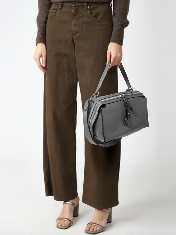 (АРТИКУЛ: 10095/1)СУМКА ЖЕНСКАЯ, НЕБОЛЬШАЯ, НАТУРАЛЬНАЯ КОЖА, СЕРАЯ, С ДВУМЯ ПЛЕЧЕВЫМИ РЕМНЯМИ