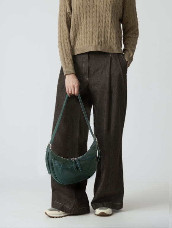 (АРТИКУЛ: 10099/1) СУМКА ЖЕНСКАЯ, НЕБОЛЬШАЯ, НАТУРАЛЬНАЯ КОЖА, ТЕМНО-ЗЕЛЕНАЯ, С ПЛЕЧЕВЫМ РЕМНЕМ