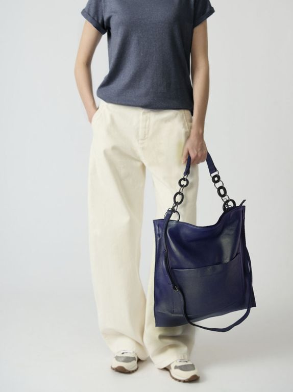 (АРТИКУЛ: 10101/1) СУМКА ЖЕНСКАЯ, БОЛЬШАЯ, НАТУРАЛЬНАЯ КОЖА, ТЕМНО-СИНЯЯ, ЧЕРЕЗ ПЛЕЧО