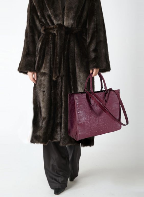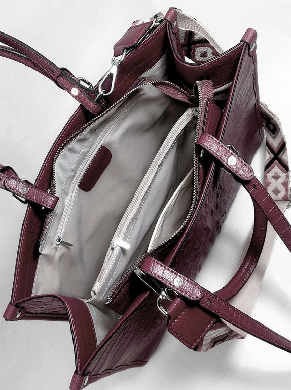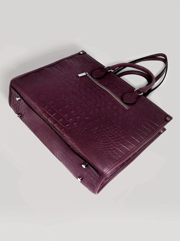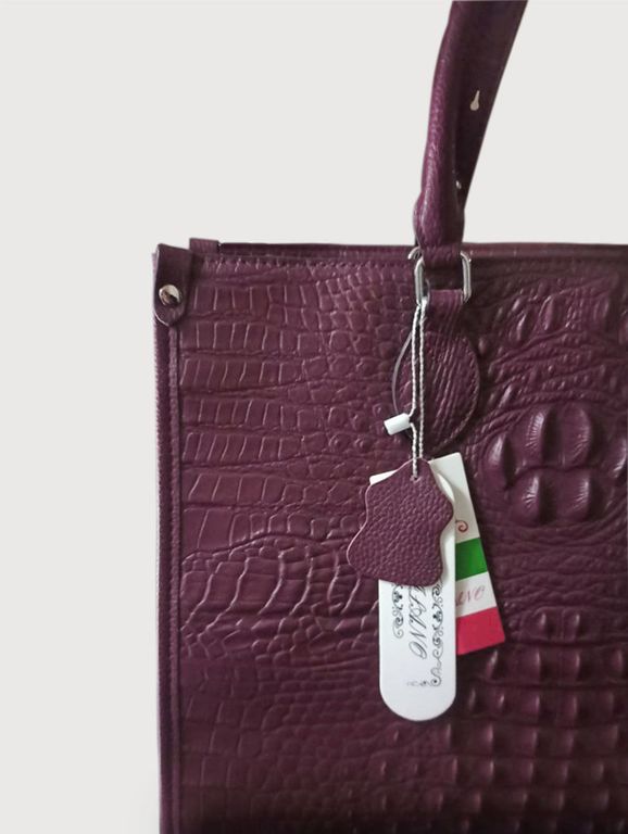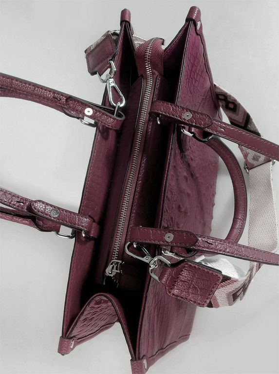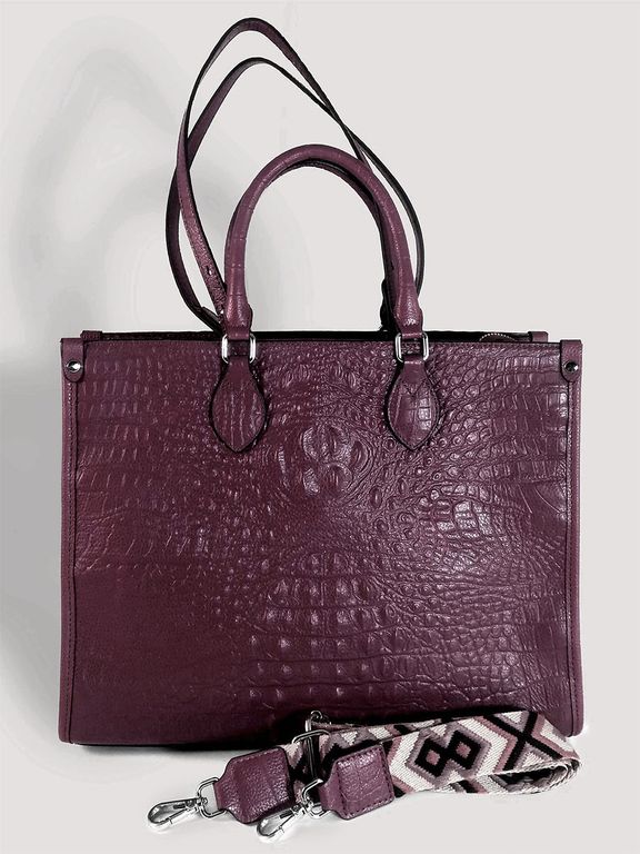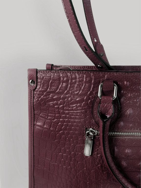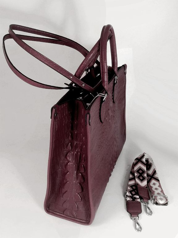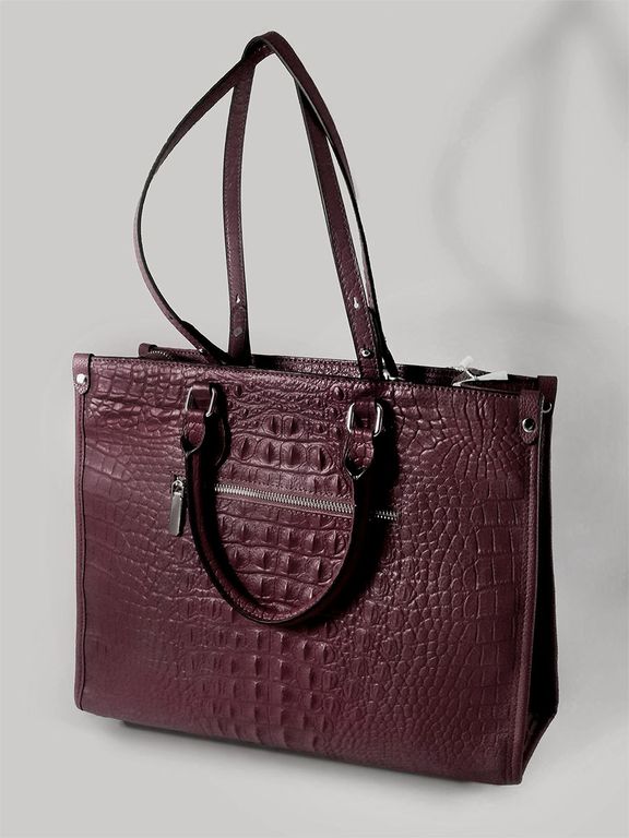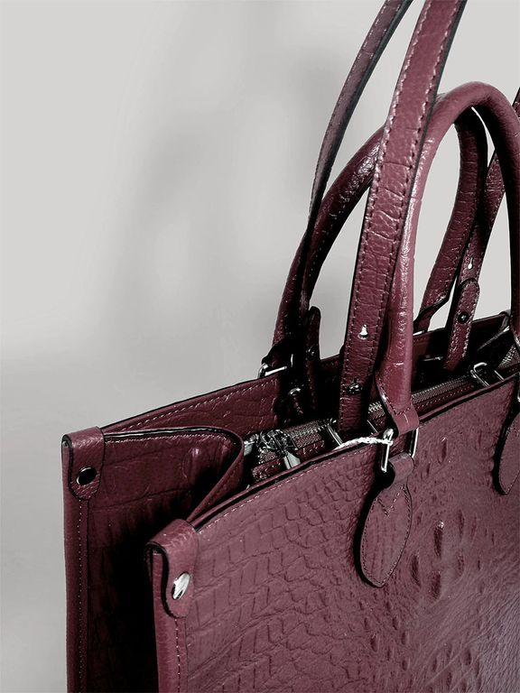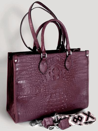 (АРТИКУЛ: 10105/1/5) СУМКА ЖЕНСКАЯ БОЛЬШАЯ, НАТУРАЛЬНАЯ КОЖА С ТИСНЕНИЕМ "КРОКОДИЛ", ТЕМНО-БОРДОВАЯ, РУЧКИ И РЕМЕНЬ ЧЕРЕЗ ПЛЕЧО