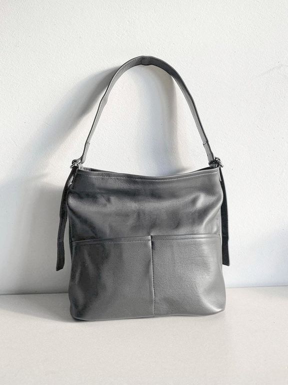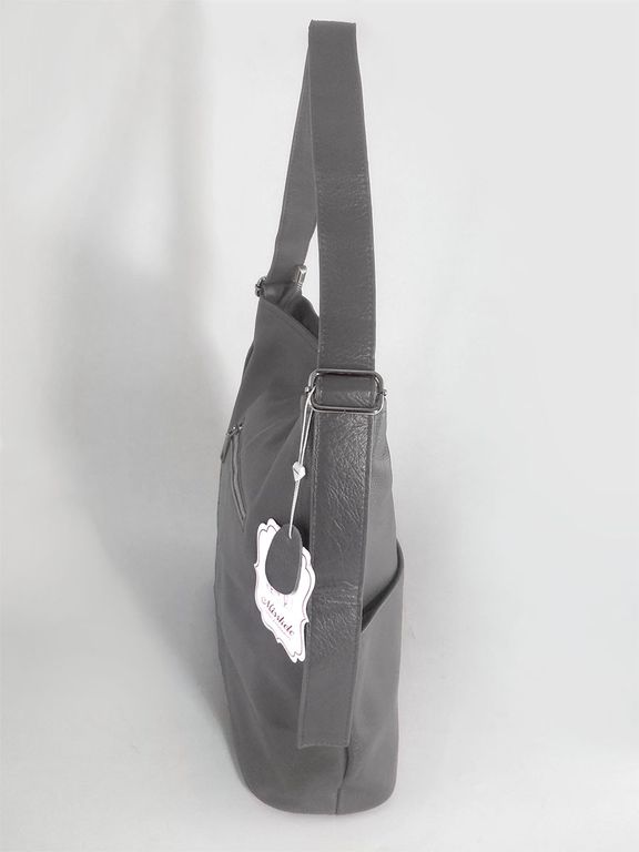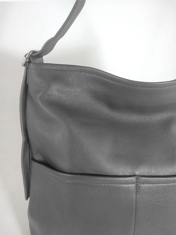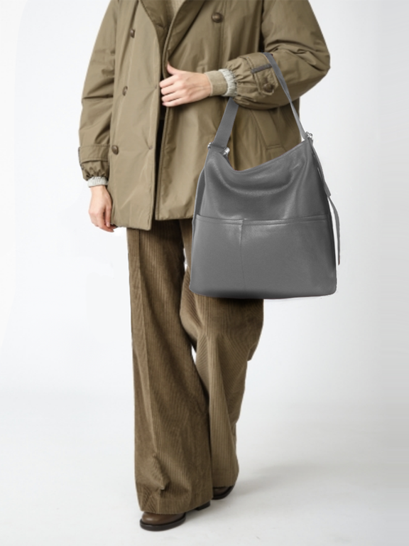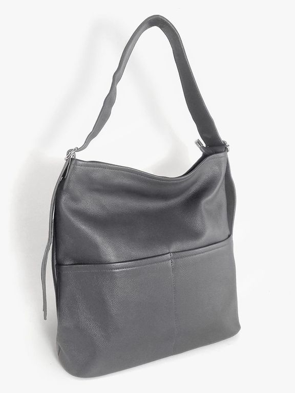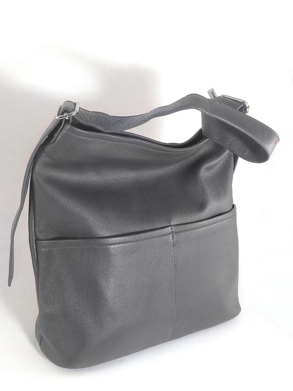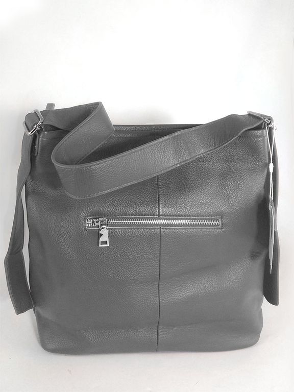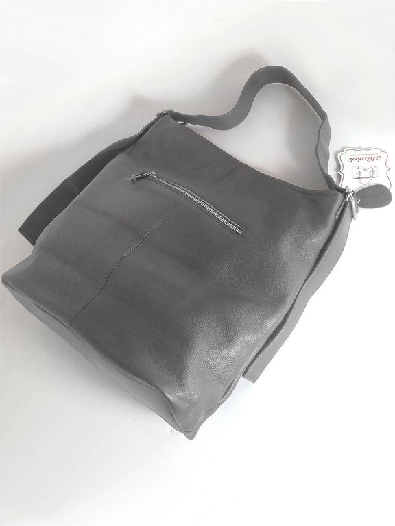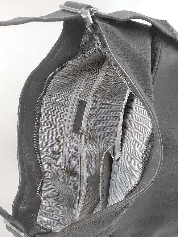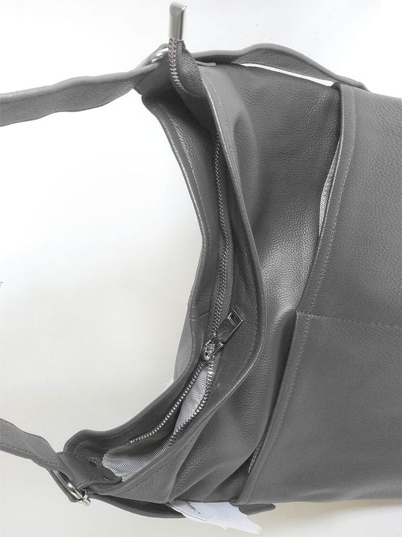 (АРТИКУЛ: 10114/1) СУМКА-МЕШОК ЖЕНСКАЯ, БОЛЬШАЯ, НАТУРАЛЬНАЯ КОЖА, СЕРАЯ, РЕМЕНЬ ЧЕРЕЗ ПЛЕЧО