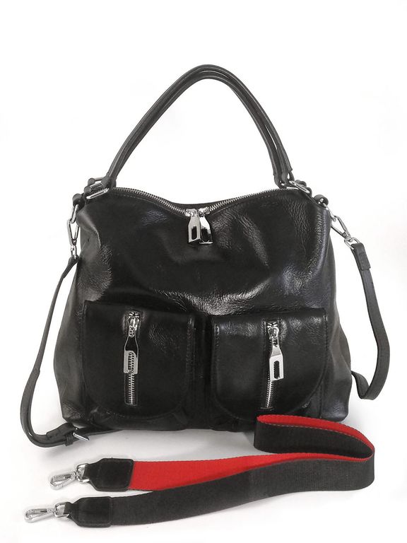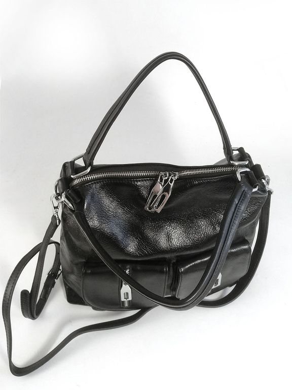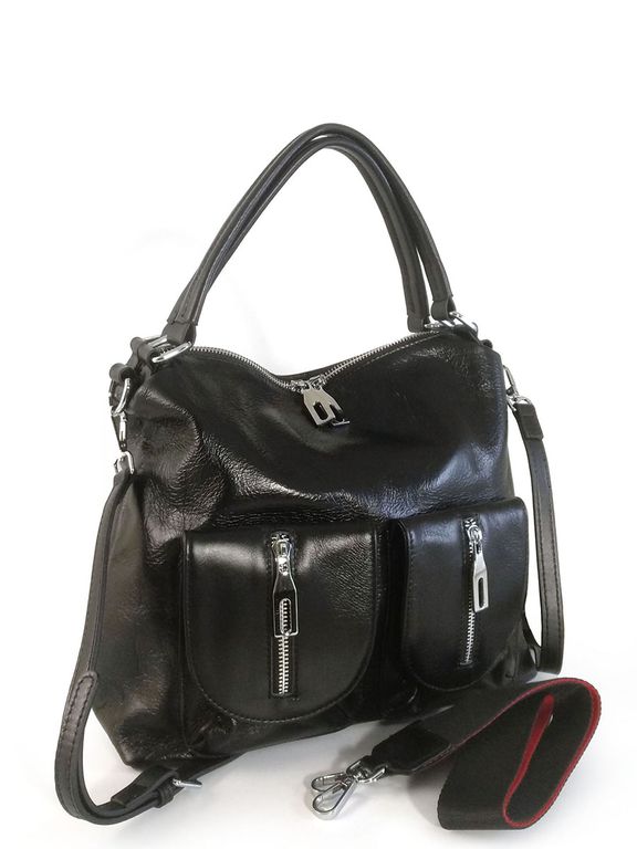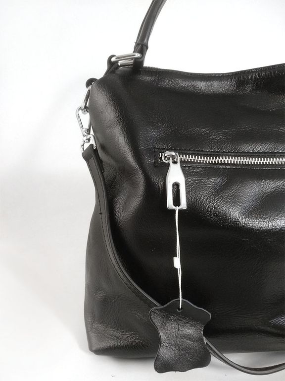 (АРТИКУЛ: 10120/1/5) СУМКА ЖЕНСКАЯ, НЕБОЛЬШАЯ, НАТУРАЛЬНАЯ КОЖА С НЕБОЛЬШИМ ГЛЯНЦЕМ, ЧЕРНАЯ, С ПЛЕЧЕВЫМ РЕМНЕМ