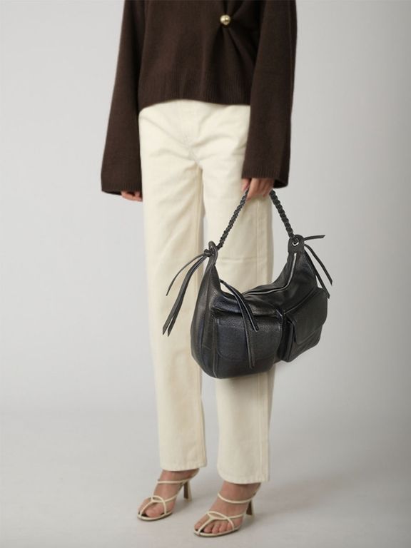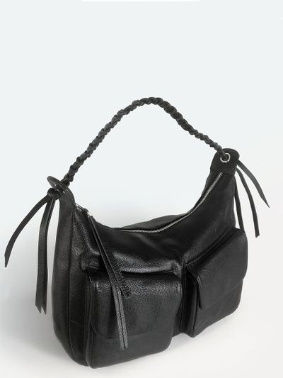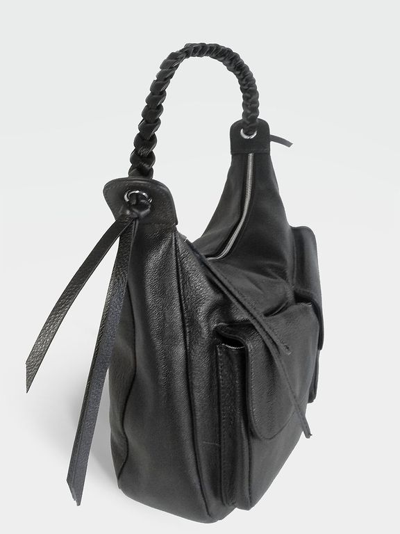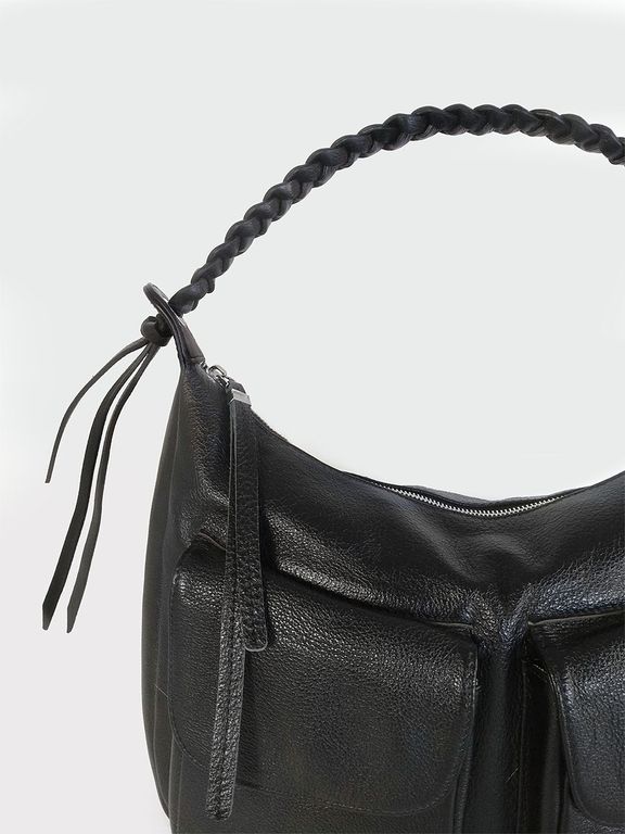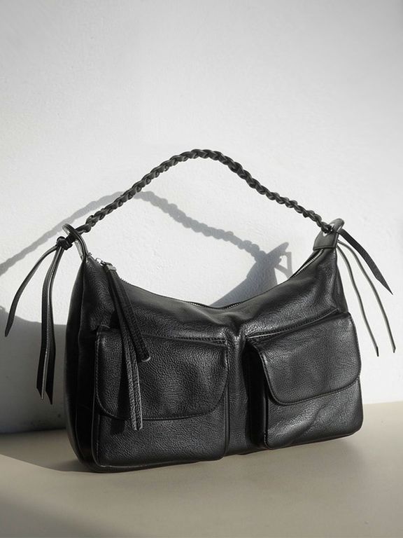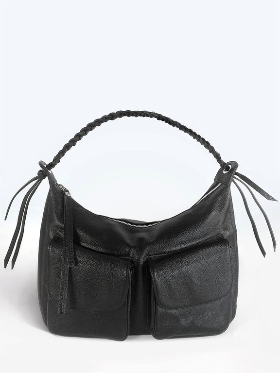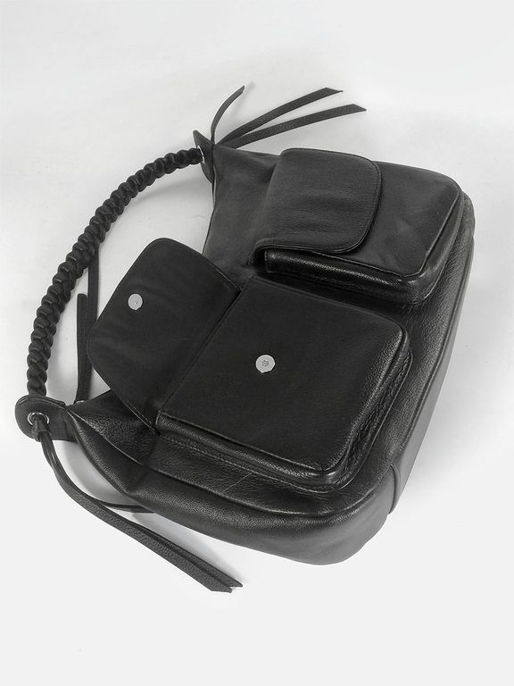 (АРТИКУЛ: 10130/1/5) СУМКА СРЕДНЕГО РАЗМЕРА, НАТУРАЛЬНАЯ КОЖА, ЧЕРНАЯ, С НАКЛАДНЫМИ КАРМАНАМИ, РУЧКА ЧЕРЕЗ ПЛЕЧО