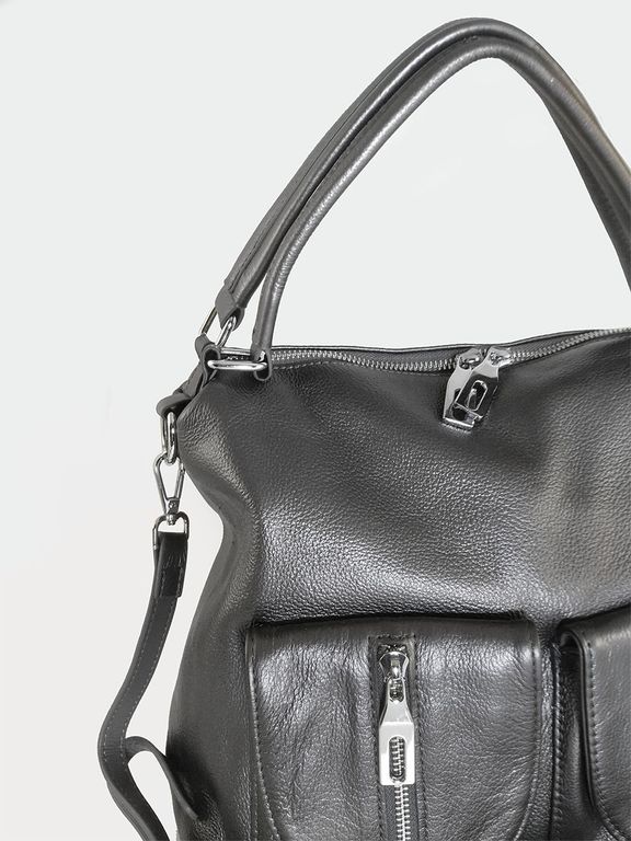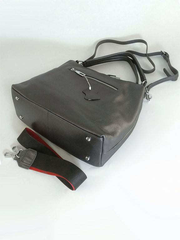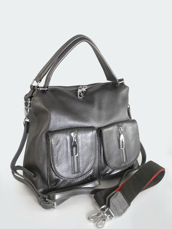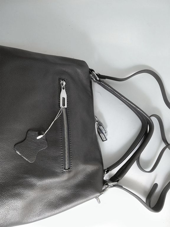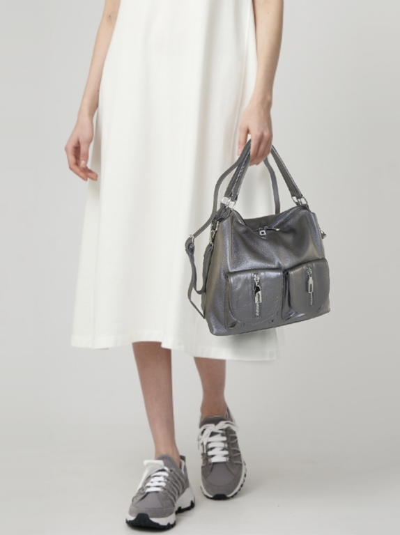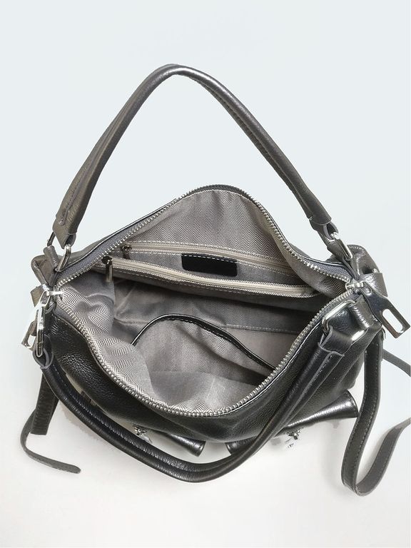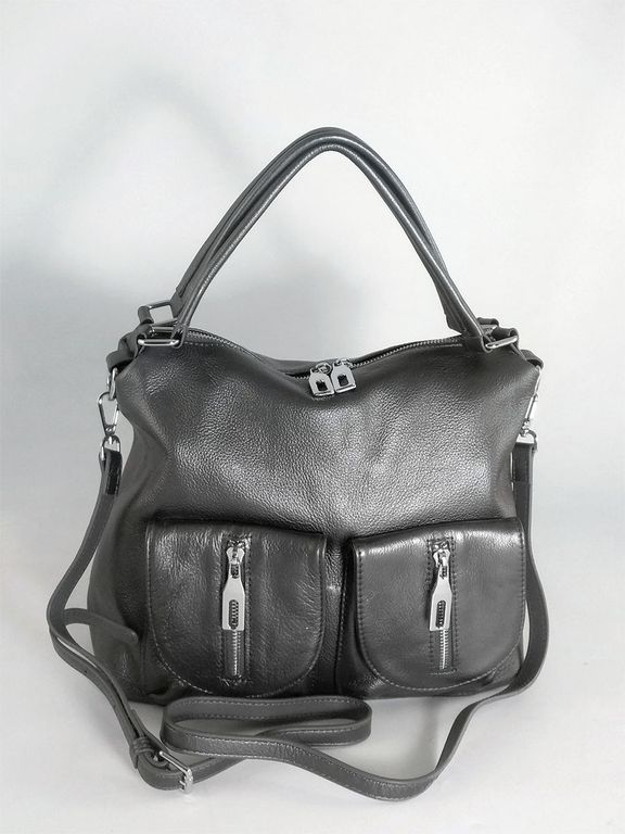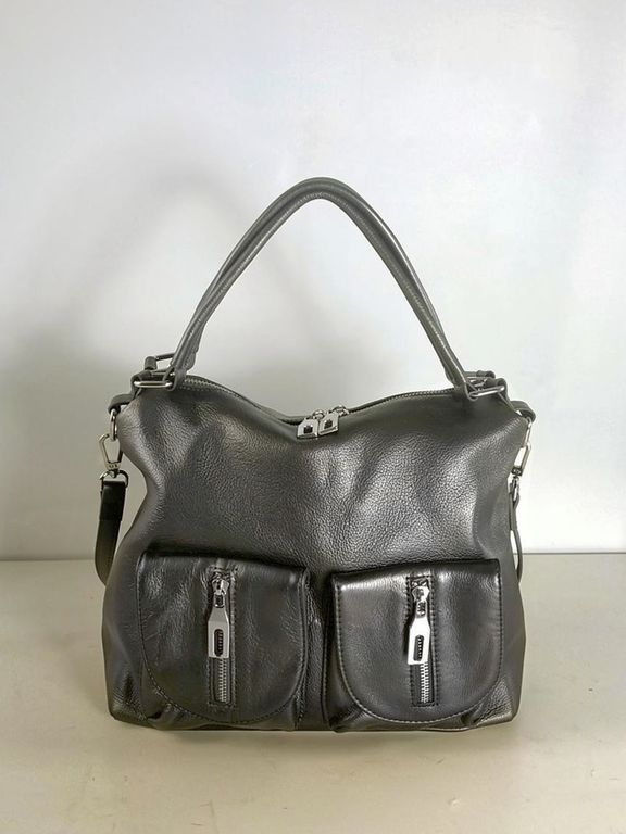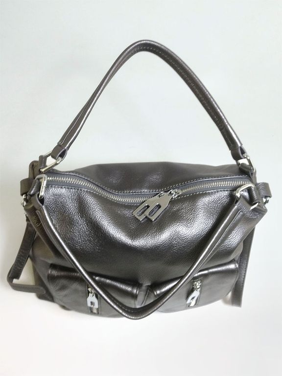 (АРТИКУЛ: 10132/1/5) СУМКА ЖЕНСКАЯ, НЕБОЛЬШАЯ, НАТУРАЛЬНАЯ КОЖА, СЕРАЯ С НЕБОЛЬШМ БЛЕСКОМ "ГРАФИТ", С ПЛЕЧЕВЫМ РЕМНЕМ