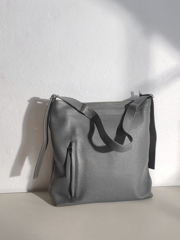 (АРТИКУЛ: 10133/1) СУМКА ЖЕНСКАЯ, БОЛЬШАЯ, НАТУРАЛЬНАЯ КОЖА, СЕРАЯ, РЕМЕНЬ ЧЕРЕЗ ПЛЕЧО