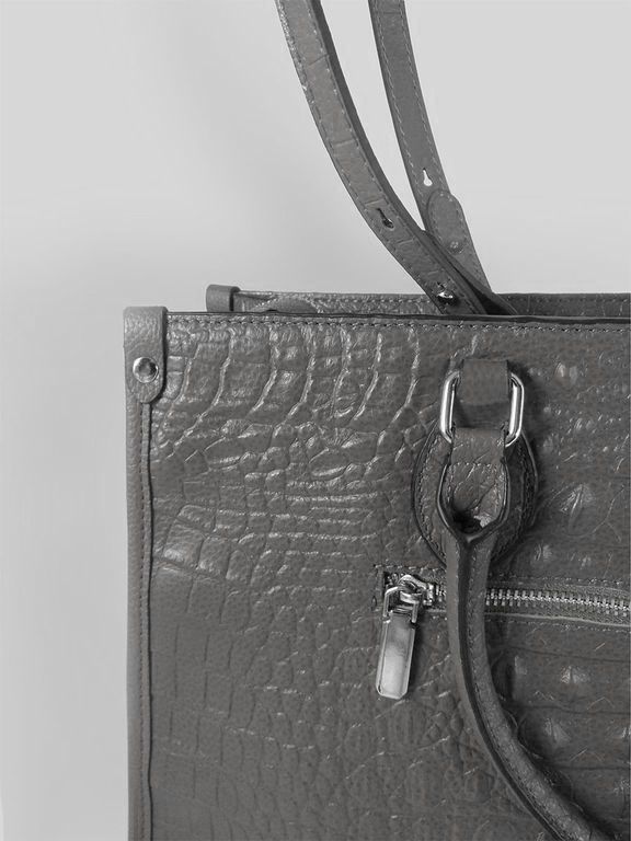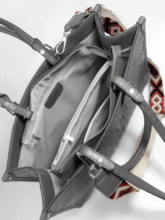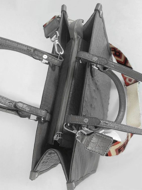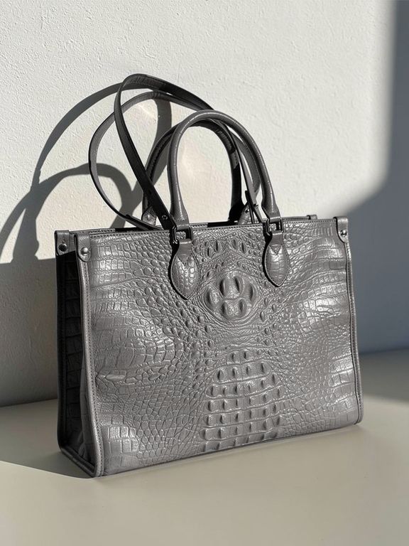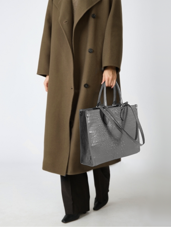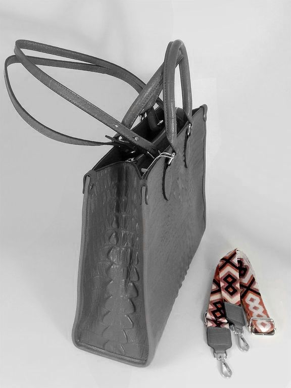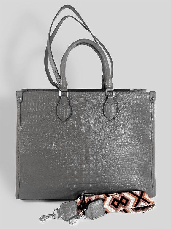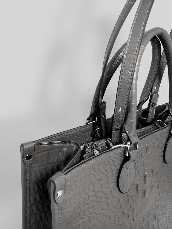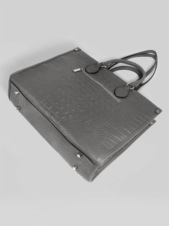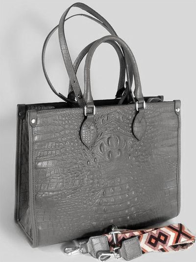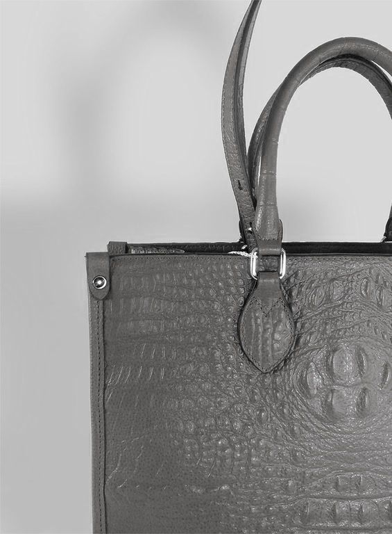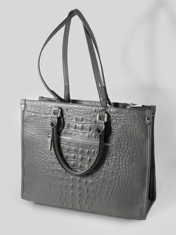 (АРТИКУЛ: 10137/1/5) СУМКА ЖЕНСКАЯ БОЛЬШАЯ, НАТУРАЛЬНАЯ КОЖА С ТИСНЕНИЕМ "КРОКОДИЛ", СЕРАЯ, РУЧКИ И РЕМЕНЬ ЧЕРЕЗ ПЛЕЧО