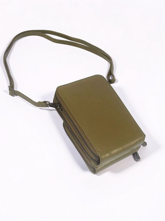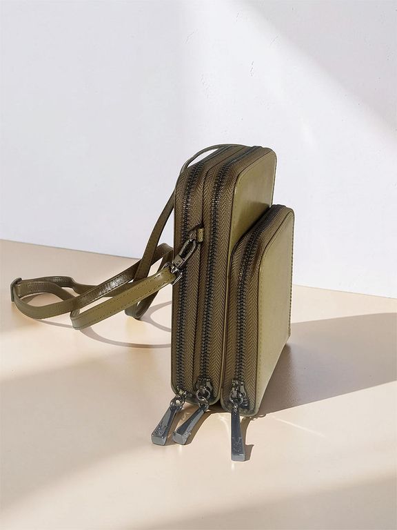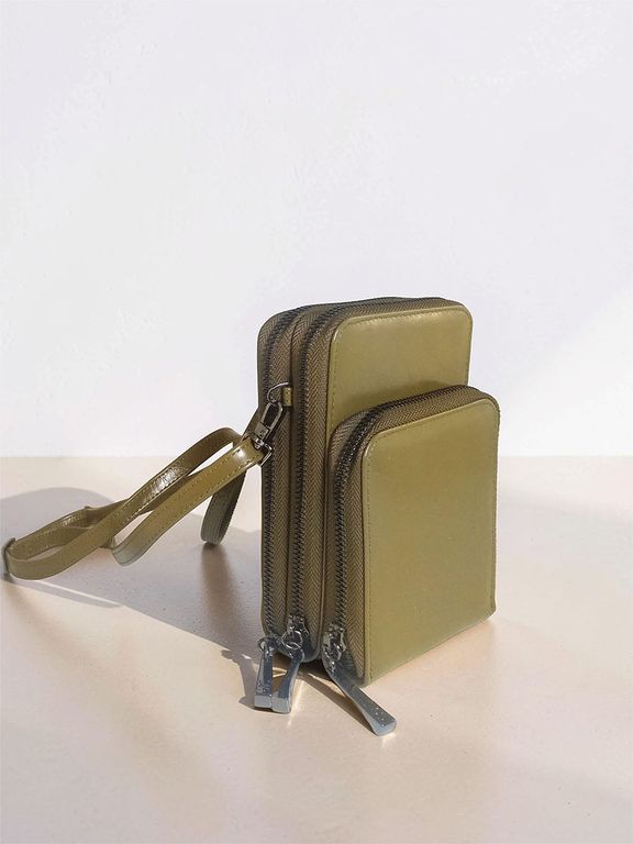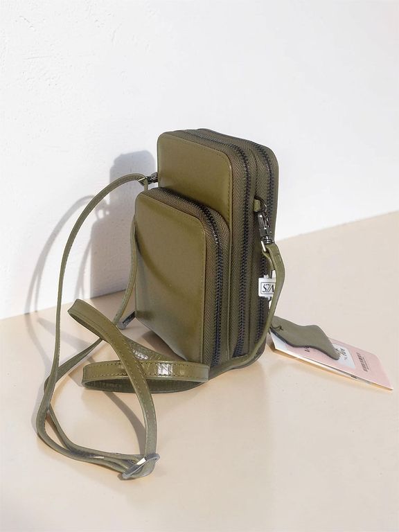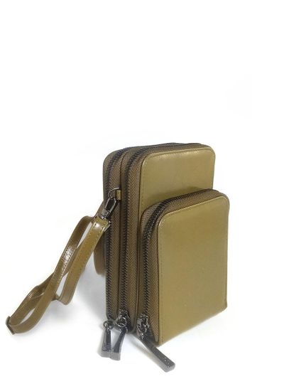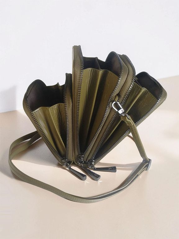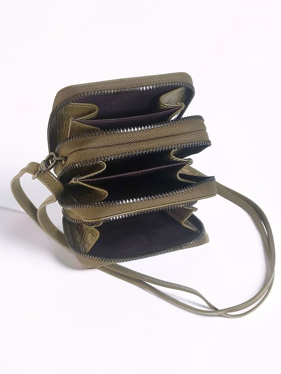 (АРТИКУЛ: 10140/4) СУМКА ЖЕНСКАЯ МАЛЕНЬКАЯ, НАТУРАЛЬНАЯ КОЖА С ГЛЯНЦЕМ, СВЕТЛО-ЗЕЛЕНАЯ "ОЛИВКОВАЯ", ТРИ ОТДЕЛЕНИЯ, С РЕМЕШКОМ ЧЕРЕЗ ПЛЕЧО