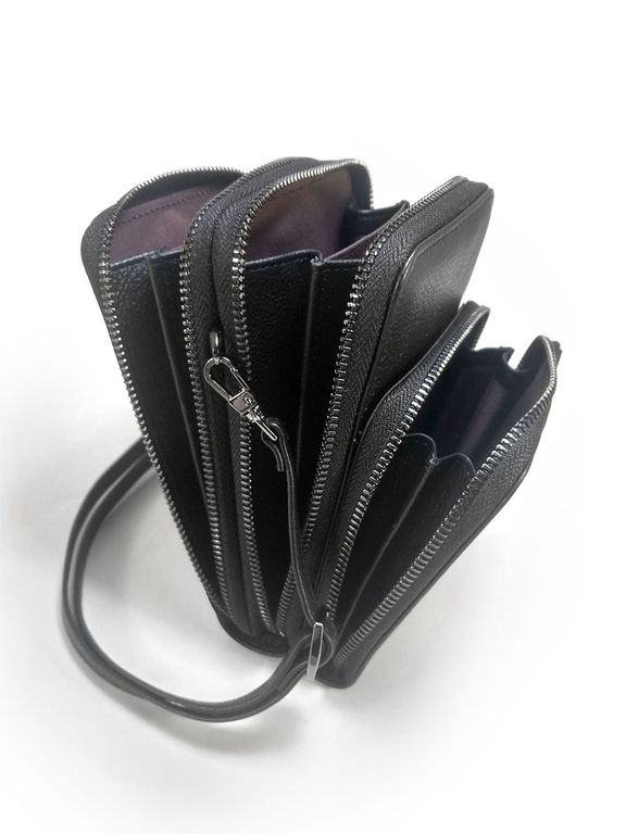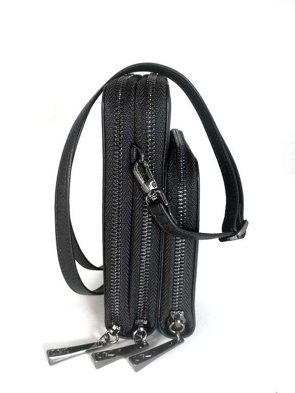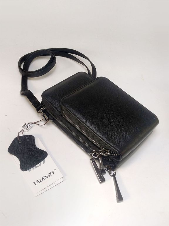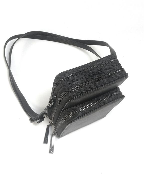 (АРТИКУЛ: 10142/3) СУМКА ЖЕНСКАЯ МАЛЕНЬКАЯ, НАТУРАЛЬНАЯ КОЖА, ЧЕРНАЯ, ТРИ ОТДЕЛЕНИЯ, С РЕМЕШКОМ ЧЕРЕЗ ПЛЕЧО