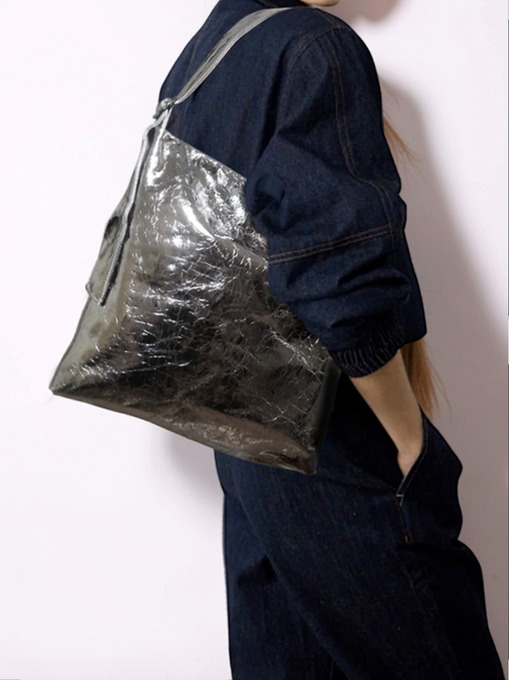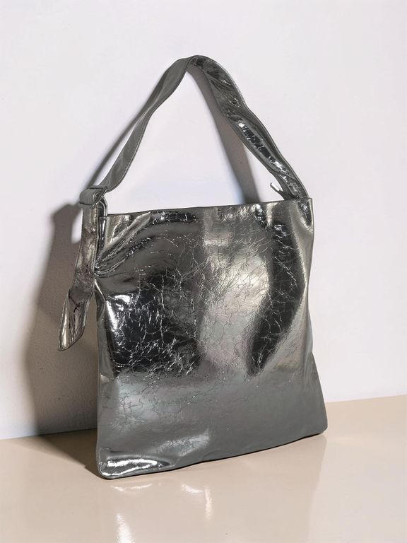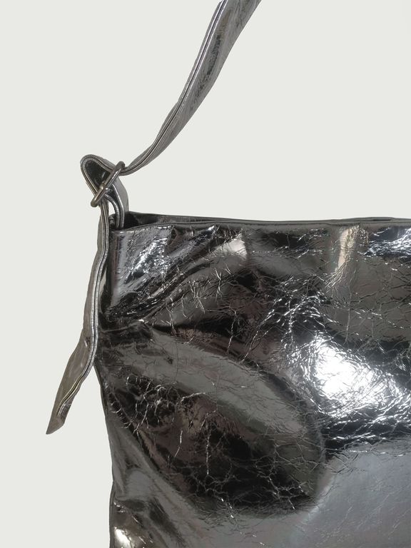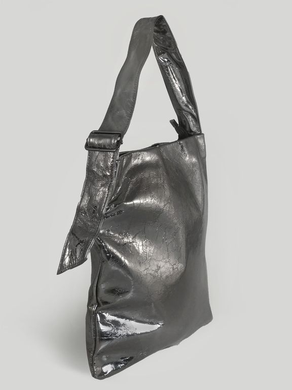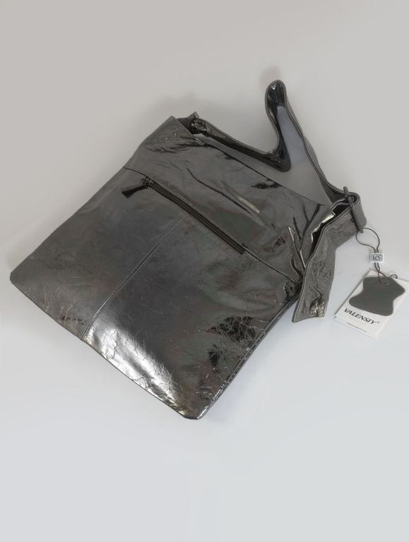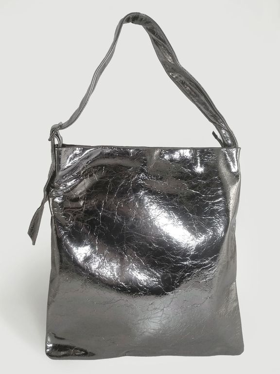 (АРТИКУЛ: 10154/3/5) СУМКА, БОЛЬШАЯ, НАТУРАЛЬНАЯ КОЖА, СЕРАЯ С СИЛЬНЫМ БЛЕСКОМ "СЕРЕБРО", ЧЕРЕЗ ПЛЕЧО *