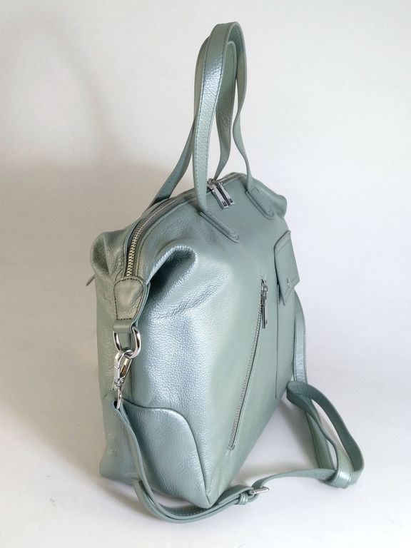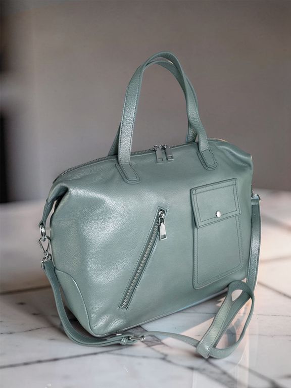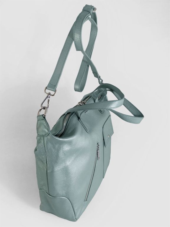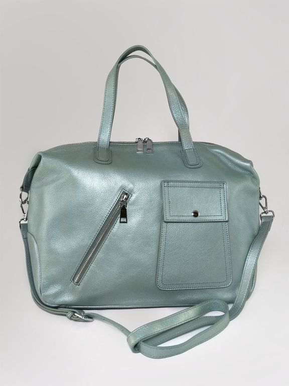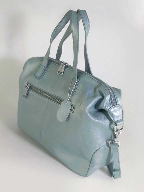 (АРТИКУЛ: 10157/1/5)СУМКА ЖЕНСКАЯ БОЛЬШАЯ, НАТУРАЛЬНАЯ КОЖА, ЦВЕТ ГОЛУБОЙ "АКВАМАРИН"" С НЕБОЛЬШИМ ПЕРАМУТРОВЫМ БЛЕСКОМ, С ПЛЕЧЕВЫМ РЕМНЕМ
